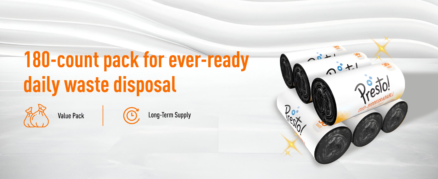 Amazon Brand - Presto! Garbage Bags | Medium | 180 Count | 30 Bags X 6 Rolls | 19 X 21 Inches | For Dry & Wet Waste | Black